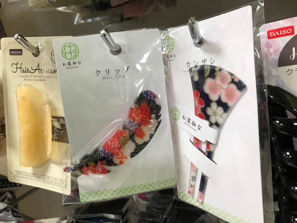 Specifically, you can get Japanese-themed ones. The one on the right on the above picture is something you put in a chignon or an updo. They’re typically worn with a yukata in the summertime. The one on the left side is a clip that you can wear everyday for any type of hairstyle. Again, though, these goods are mostly for the ladies.