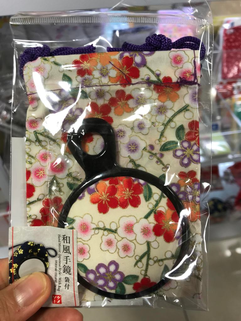 The one below is a makeup mirror that comes with a pouch. I got one a long time ago from a friend, and I still use mine to this day. They’re very sturdy.