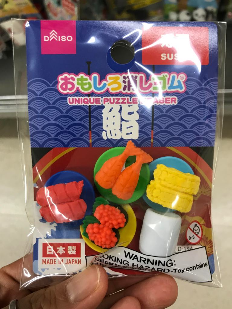 But you don’t have to get the sushi ones in particular if you don’t like sushi. There are lots of other options to get, some might be cuter or a different kind of Japanese good. Plus, they’re cheaper when you get them at the 100-yen shop than in the regular souvenir shops.