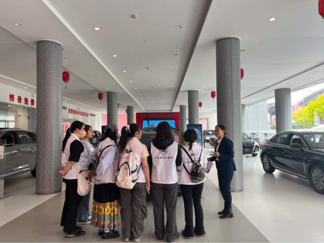 蔚蓝4s店的年轻销售团队也向师生们展示了网络营销、社交媒体运营等营销策略方面的创新思路。同学们被店内显示屏上蔚蓝汽车充电站覆盖率所惊叹,让师生们感受到了新时代营销的活力与魅力。(审稿 鄢曹政)