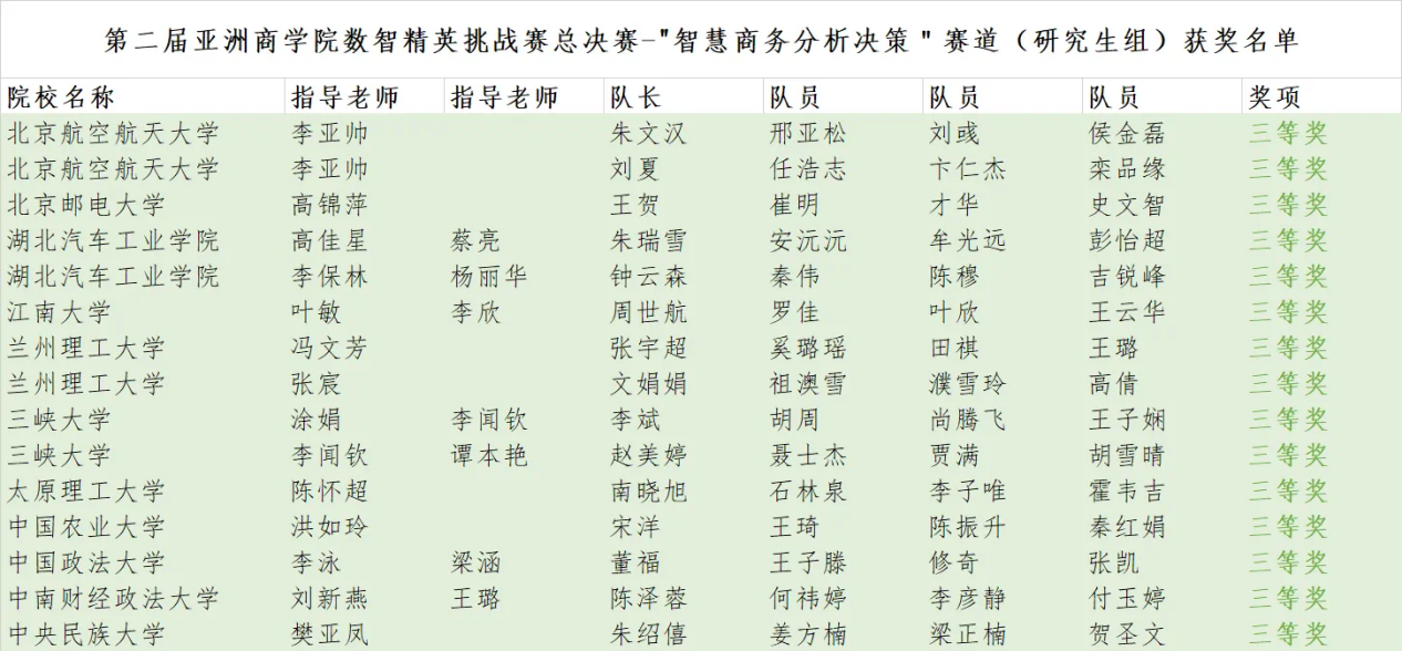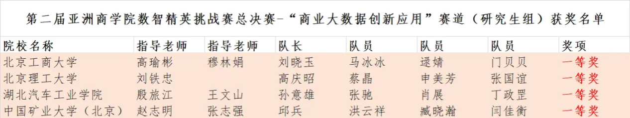 近日,由中国商业经济学会主办的第二届亚洲商学院数智精英挑战赛暨第五届全国老员工智慧商务大数据创新应用大赛总决赛(研究生组)成绩揭晓。