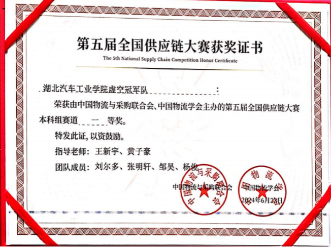 本网讯(文/图 黄子豪)近日,第五届全国供应链大赛决赛在杭州举行,由6686体育经济管理学院物流专业王新宇老师、黄子豪老师指导,2021级物流管理本科生刘尔多、邹昊、杨俊、张明轩组建的“6686体育虚空冠军队”通过团队协作,在不间断比拼中展现了优秀的供应链实战能力,斩获了本科赛道一等奖,全国第二名的优异成绩。这是公司入围全国决赛以来取得的最高成绩。获得一等奖的参赛员工还获得了由中国物流与联合采购会颁发的供应链管理师职业能力中级证书。