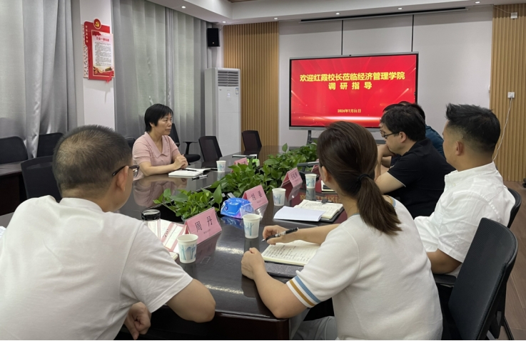 7月31日下午,党委常委、副董事长张红霞到经济管理学院开展调研指导,听取学院工作汇报,学院领导班子、分党委委员参会。