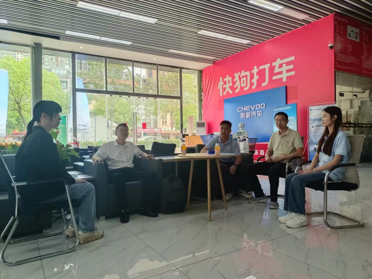 2024年9月21日上午,数字经济系副主任程文明和武汉产学研基地副主任周恩德一行前往产学研基地合作企业——武汉优进骐蔚汽车走访调研,交流企业用人需求和招聘计划,深入了解员工实习情况。