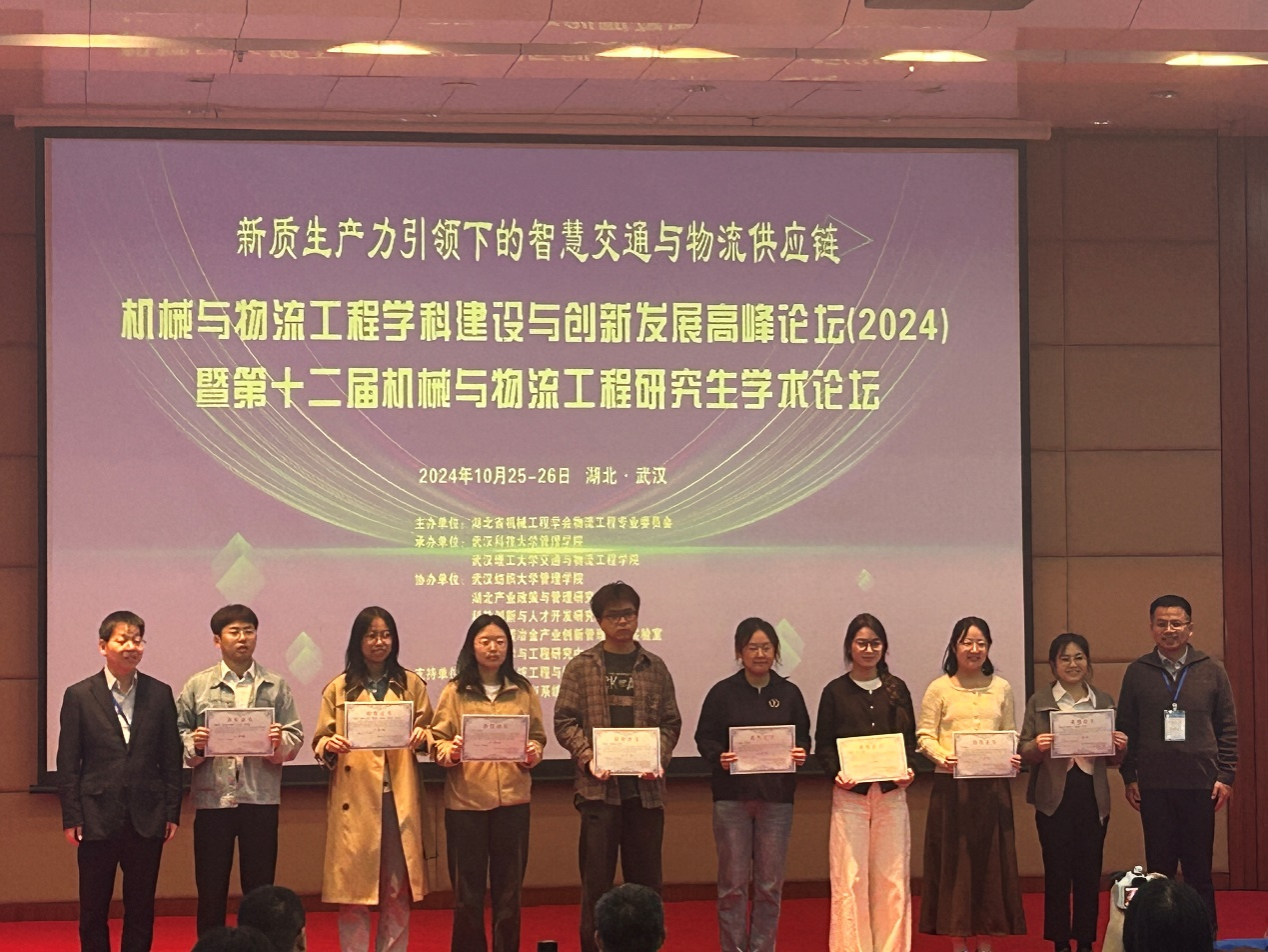 2024年10月26日,由湖北省机械工程学会物流工程专业委员会主办,武汉科技大学管理学院和武汉理工大学交通与物流工程学院承办的“机械与物流工程团队建设与创新发展高峰论坛(2024)暨第十二届机械与物流工程研究生学术论坛”在湖北省武汉市召开。论坛以“新质生产力引领下的智慧交通与物流供应链”为主题,邀请湖北省交通规划研究院、湖北省现代物流发展促进会、武汉现代物流研究院、湖北物资流通技术研究院的专家学者与同方知网数字出版技术股份有限公司的企业精英就机械与物流工程学科的前沿理论方法成果进行深入的探讨。6686体育经济管理学院2022级硕士研究生牟光远和安沅沅参加了此次会议并进行主题汇报,同时都获得了会议二等奖。