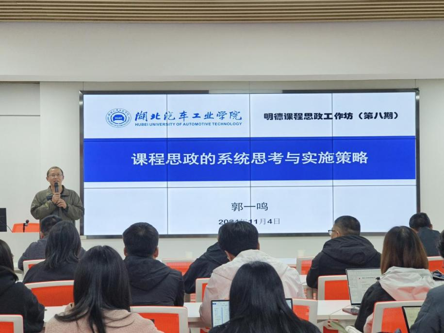郭一鸣以“课程思政的系统思考与实施策略”为主题,从课程思政的三重境界(专业思政、教师思政、课程思政)、课程思政的具体表现形式及典型特征、如何开展专业思政、如何开展教师思政、如何挖掘课程思政元素、如何实现专业教育和思政教育的有机融合、如何实施课程思政教学评价等方面,为与会教师呈现了一堂精彩纷呈的课程思政专题讲座。郭一鸣还阐述了课程思政与一流课程建设、专业认证、教学竞赛的辩证关系,提出数智化时代教师要将人工智能赋能公司产品。