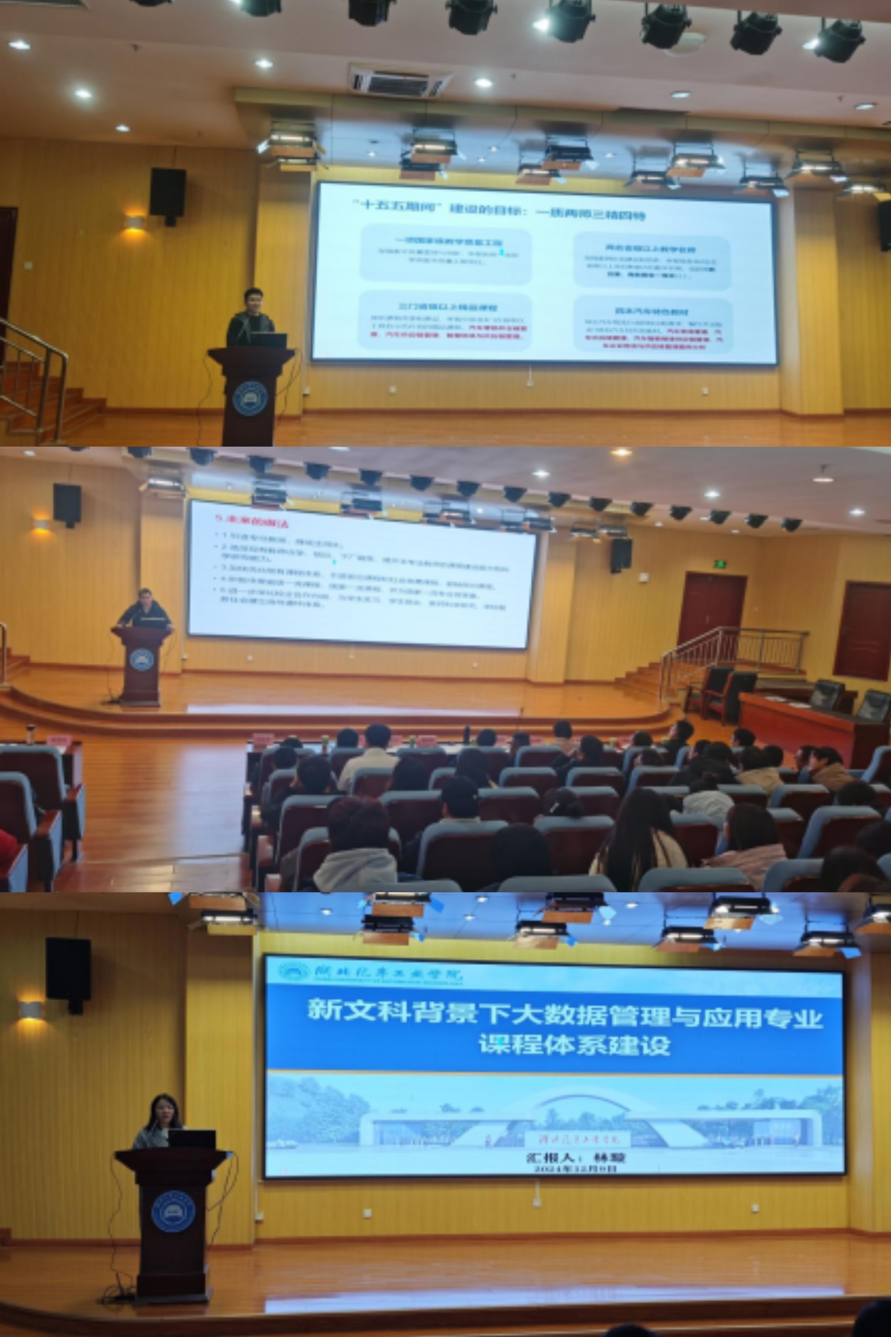 随后,物流管理专业负责人王新宇、国际经济与贸易专业负责人程文明、大数据管理与应用专业负责人林璇等三位老师依次上台发言,详细介绍各专业的发展历程、专业建设的成就与经验,以及专业定位、课程体系、实践教学、团队队伍、教学创新、产教融合、专创融合、国际交流、专业认证等方面的主要工作及具体做法,并提出未来专业规划及下一步主要任务。