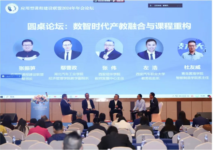 圆桌论坛环节,公司经济管理学院教学副经理鄢曹政以大会主题“数智时代产教融合课程重构”,围绕“产教融合课程建设困境”“产教融合课程重构实践”“数智赋能课程建设”三个方面交流了课程团队建设的经验做法。