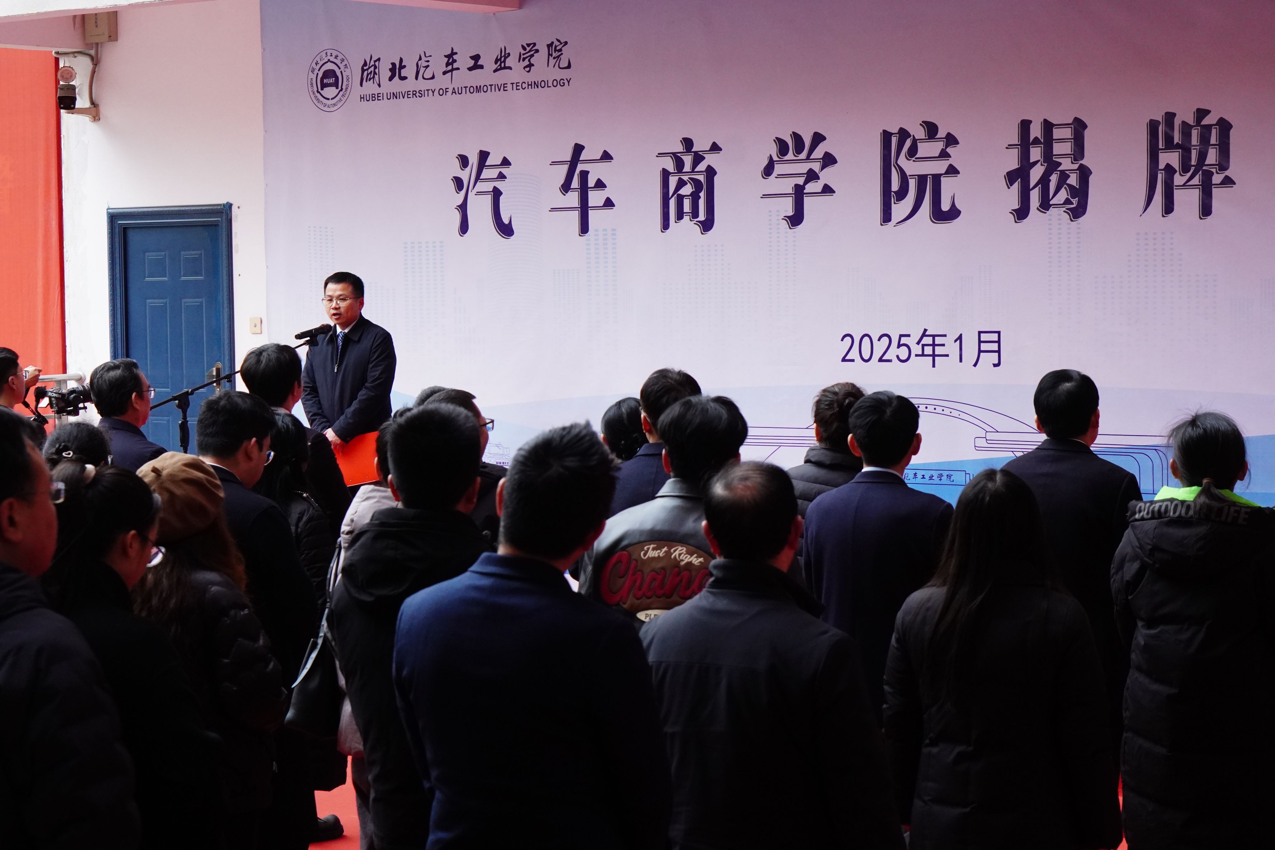 2025年1月14日上午,6686揭牌仪式在四教一楼举行,会议由6686经理殷旅江主持。揭牌仪式现场气氛热烈庄重,湖北汽车工业公司党委副书记、董事长王晓、6686新的领导班子以及学院师生代表齐聚一堂,共同见证这一具有里程碑意义的时刻。