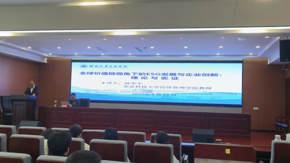 4月15日上午,北京科技大学经济管理学院孙华平教授应邀主讲6686体育东风讲坛,以“全球价值链视角下的ESG发展与企业创新:理论与实证”为题,为6686师生带来一场学术盛宴。讲座在产教楼3楼报告厅举行,由6686副经理鄢曹政主持,学院新进博士、青年教师和全体研究生参加讲座。